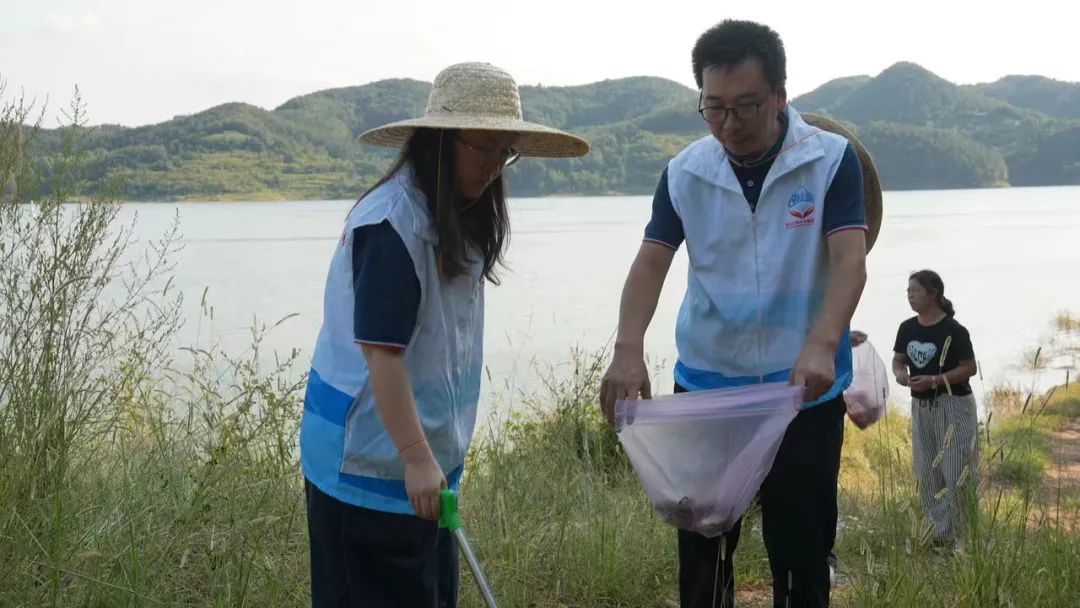 志愿者们拿着长柄钳、垃圾袋等工具,沿着库区河岸,捡拾散落在库区周边的饮料瓶、包装袋等白色污染物,活动现场,大家配合有序,经过2个多小时的努力,库岸边垃圾得到了有效清理,丹江口党支部广大党员、入党积极分子以实际行动践行习近平总书记关于“一泓清水永续北上”的殷切嘱托,用心用情用行动助力“文明河流”建设。